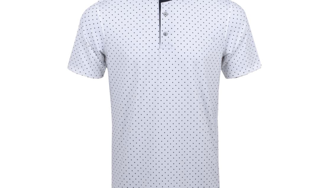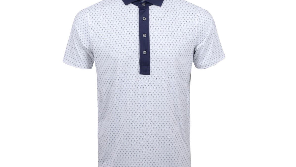 The Red Tail polo from Greyson is a technical stretch polo with an allover print design. The shirt has a knitted contrast collar and a four button placket at the neck. The signature wolf is on the back of the wearer's neck.